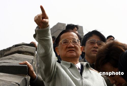四月十七日上午,中国国民党荣誉主席连战携夫人游览北京八达岭长城,并为北京八达岭长城题字。作者:盛佳鹏