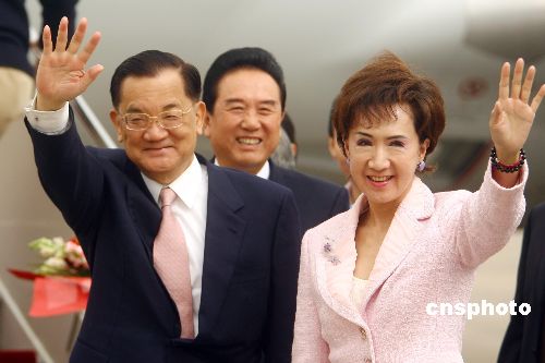 四月十七日下午,中国国民党荣誉主席连战携夫人离开北京飞往福建,开始福建的祭祖之旅,中共中央台办主任陈云林到机场送行。作者:盛佳鹏