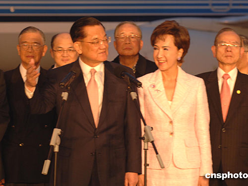 连战先生随后在机场发表简短的演讲。他说,这是第一次来到福建省,讲得更准确一点,以前曾经到过金门、马祖,这是第一次到福建,到福州,感觉特别亲切。尤其各位好朋友在这样的时候来欢迎我,我谨代表内人、家人、访问团的朋友向福建乡亲表示由衷的感谢。