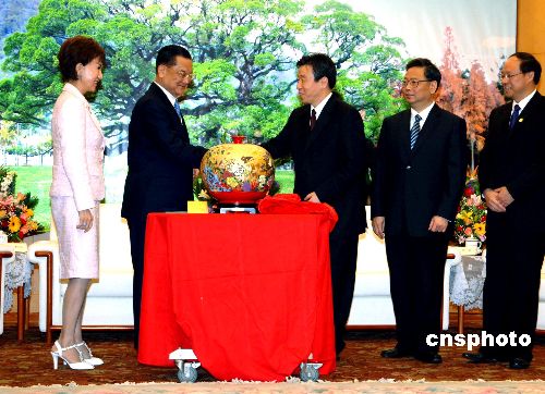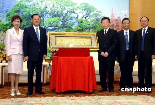 图:连战一行与福建政府互赠纪念品