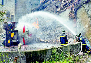 他介绍说,车内的环氧乙烷属于剧毒气体,扑灭后气体泄漏会造成环境污染甚至更大的爆炸。但这种气体燃烧后就分解为无害气体了。专家组决定让火一直燃,直到把罐车内的环氧乙烷全部分解掉。为防止聚热引起罐车整体爆炸,消防队队员不停地向罐车喷水降温。至下午3点左右,已喷水120余吨。