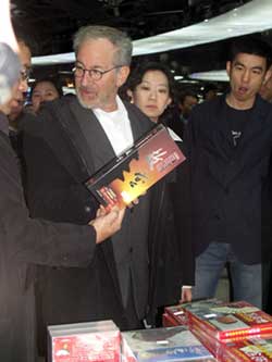 而由于之前没有接到任何斯皮尔伯格要来参观的消息,包括FAB的工作人员及顾客都被这突如其来的惊奇感到意外。一位当时正在购买DVD的年轻人告诉记者,“我可是斯皮尔伯格的超级影迷,当时看到他后我都傻了,所以当时没反应过来。现在后悔死了,真应该冲过去让他给我签个名,太遗憾了。”和记者交流的同时,这位年轻人的兴奋之感还没有褪去。(记者吴冬妮)