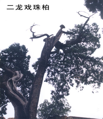 另外还有“猴子倒挂”、“干枝梅”“飞檐走壁”等古柏,个个形象逼真,姿态各异。