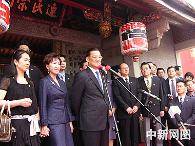连战在拜祭连氏宗祠后发表简短讲话,其中穿插着闽南话。他首先感谢宗亲的热情相迎,他说“我们常说人亲不如土亲,过去一年来,我这是第三次到大陆,路过许多的地方,受到大陆民众热烈地欢迎,感觉到非常地亲切,就象我们的兄弟姐妹一样,特别是今天来到马崎,来到漳州,受到宗亲这么热烈地欢迎,鞭炮放了一路,彩旗插了一路,我想我的太太和孩子们都是非常感动的,因为这块土地是我们大家的祖先一起走过的土地,这块土地是我们祖先辛苦耕耘走过的土地,我们感到非常地亲切,也非常非常地感动”。