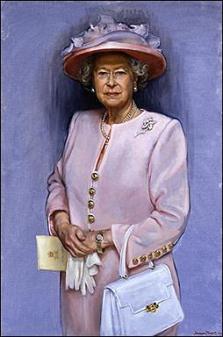 这幅由画家费普斯所执笔的女王画像,呈现女王穿戴一身粉红色套装,戴着白色手套,手挽白色皮包,参加位在艾斯克特所举行的赛马活动。费普斯形容她第一次在白金汉宫女王官邸音乐厅里,替伊莉莎白女王画画时感到有点“力不从心”,因为女王一直在逗她笑。