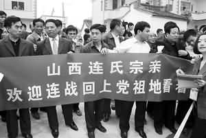 连有根说,上党现有4500多名连氏宗亲。连战此次跨海寻根,是中华连氏的大事,他们都很关心,同根同源的亲情是岁月和空间都无法割裂的。