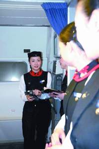 飞机起飞之后,小陶虹和梁阿姨真正进入角色。为乘客端茶倒水送饭,尽管总是忍不住想笑,但是别说还真有那么几分空姐的模样。仅仅一个小时四十分钟的航程,小陶虹陪着梁阿姨总算圆了她年轻时的梦。飞机下降前,两位“空姐”含笑向乘客表示歉意和感谢。最后,梁阿姨兴致上来,让小陶虹和几位漂亮的空姐伴唱一首《北京的金山上》,而自己却跳起了藏族舞。此情此景,引来乘客一片掌声。(记者张学军)