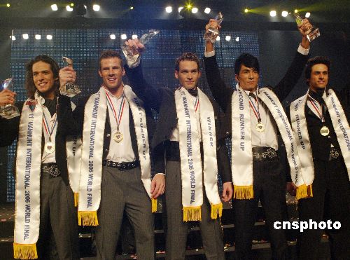 4月19日晚,由福建晋江市联合Manhunt国际男模特管理集团和北京概念98时尚推广机构共同主办的“利郎2006 Manhunt世界男模特大赛国际总决赛”在福建晋江市举行总决赛,来自世界54个国家的男模特选手参加角逐,最后来自美国的选手马约尔获得冠军、比利时选手豪奎尔获得亚中国选手赵征获得季军、土耳其选手和西班牙选手获第四、第五名。作者:钱兴强