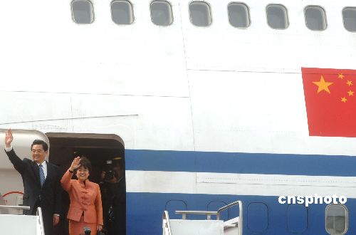 图:胡锦涛飞往首都华盛顿