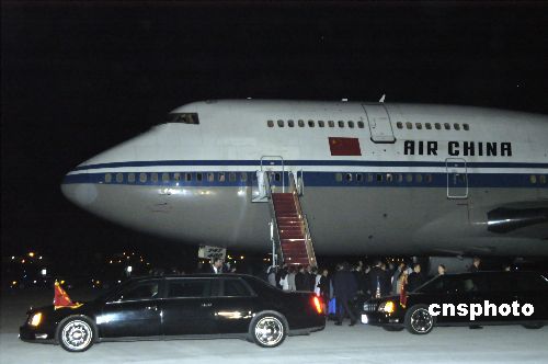 当地时间4月19日晚9点40分,中国国家主席胡锦涛乘专机抵达美国空军安德鲁斯基地专用停机坪。作者:邱江波
