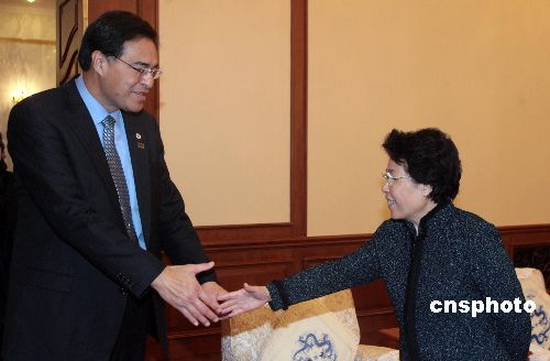 四月二十日,国务院侨办主任陈玉杰在北京会见了来访的美国夏威夷州檀香山市长穆菲·韩纳曼先生一行。作者:廖文静