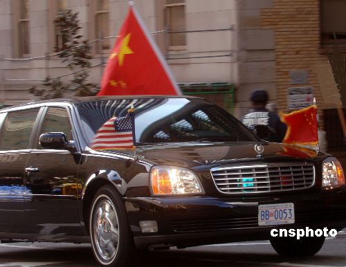 四月十九日,中国国家主席胡锦涛乘坐的美国国宾特型车,在西雅图进行参观访问。作者:贾国荣