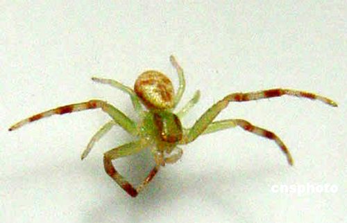 2006年4月20日,山东聊城昌润路汇川副食店的徐俊国在小店附近发现一只形如“人面”的蜘蛛。该蜘蛛有8条腿,身体呈绿色,嘴巴、眉毛、眼睛、鼻子轮廓清晰,恰似一张人脸,形象逼真,令人称奇。作者:张振祥