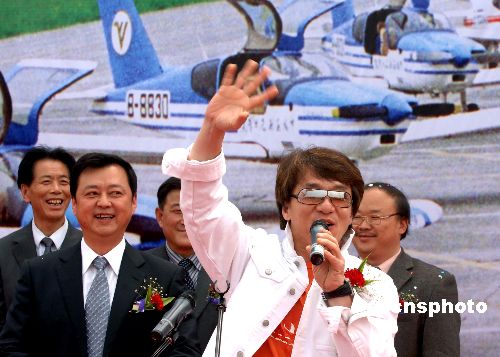 4月21日,成龙从深圳乘坐中国民航飞行学院的高级喷气教练机飞抵在四川广汉市的飞行学院机场。22日,他与校方商谈建立助学基金,帮助生活困难的飞行学员完成学业。作者:余坪