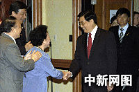 当晚六点三十分,胡锦涛主席专门抽出时间,来到位于华盛顿特区康涅狄克大街的万豪酒店,三百五十多名侨界和学界精英中间,向大家表示亲切问候,合影留念,并即兴发表了演讲。