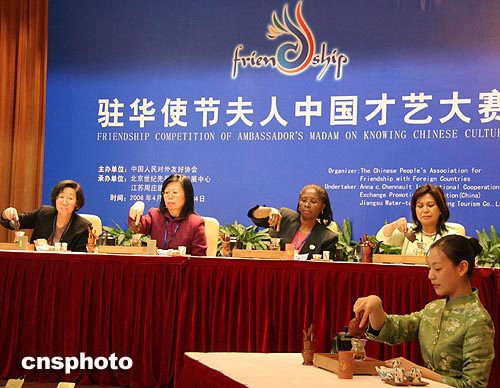 四月二十三日,由中国人民对外友好协会主办的“二○○六驻华使节夫人中国才艺大赛”在北京举行昆曲表演和茶艺两项比赛,结果昆曲表演冠军花落孟加拉驻华大使夫人头上,茶艺特等奖则被日本驻华参赞夫人摘走。