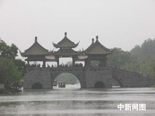 五亭桥:五亭桥是瘦西湖的标志,在全国园林中有一席之地。其最大的特点是阴柔阳刚的完美结合,南秀北雄的有机融和。该桥建于莲花堤上,是清乾隆22年(1757年)巡盐御史高恒所建,形状象一朵莲花,古称“莲花桥”。