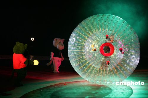 从赛馆里进出的各个国家和地区的运动员不时停下脚步欣赏着孩子们的表演。多米尼加共和国的教练甚至放下背包,和小朋友切磋起球技,获胜后,还不忘和孩子击掌相庆。