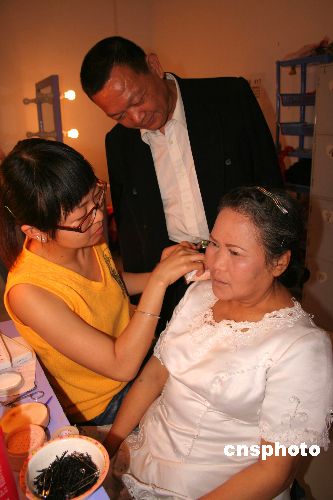 4月25日,重庆市荣昌县广顺镇居民杨道才、贺学炳夫妇在县城照相馆准备拍摄结婚37年纪念照。随着农民生活条件的提高,不少农民纷纷补照以前没有照到的婚纱照,以留下生命中的美好瞬间。近日来,当地不少农民到照相馆补照婚沙照,成为了当地居民生活的一景。作者:朱芸锋