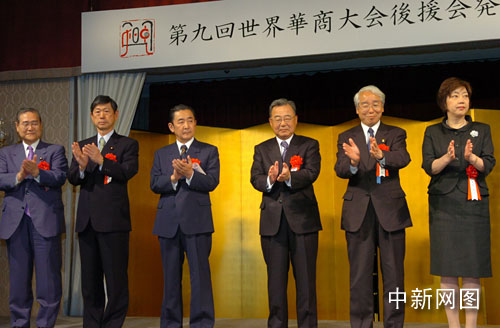 第九届世界华商大会组委会主席黄耀庭和日本前首相、日本国际贸易促进协会会长桥本龙太郎、前外相、日中友好议员联盟会长高村正彦、兵库县知事井户敏三、大阪府知事太田房江、神户市长矢田立郎、日中协会会长野田毅、日本经济团体联合会副会长御手洗富士夫、神户工商会议所会头水越浩士、关西经济同友会代表干事森下俊三等后援会发起人,以及日本各界知名人士和旅日华侨华人代表三百多人与会。中国驻日大使王毅应邀出席并致词。