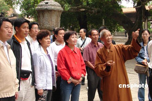 泉州市市长朱明会见了参访团一行,并向客人介绍了泉州的情况。他说,在二千三百多万台湾汉族同胞中,祖籍泉州的约有九百万人,泉州人敢拼会赢,民营经济获得了蓬勃发展,目前已经形成纺织鞋服、建筑建材、工艺制品、食品饮料、机械制造等五大传统优势产业,正在培育石油化工、修船造船、汽车以及零配件、电子信息和生物工程五大新兴产业,努力把泉州建成一个现代化的工贸港口城市。他说,泉州与台湾地缘、血缘、人缘、法缘、商缘相同,两岸的关系源远流长,有很密切的联系,他希望两地今后能在经贸、文化、旅游方面有更好的交流,两地的乡亲可以像走亲戚那样经常往来沟通。