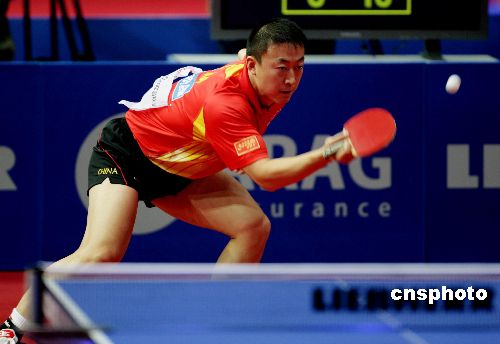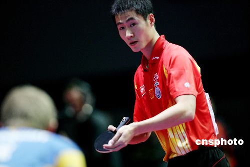4月27日,在德国不来梅举行的第48届世乒赛团体赛男子第四轮比赛中,中国男队在瑞典队主力队员未上场的情况下轻松获胜,继续保持不败战绩。图为马琳以3:0战胜对手。作者:王瑶