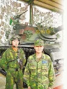 台陆军第一位前往美国维吉尼亚军校受训的女军官李佩君(右),已返台担任通信排长。(来源:“中央社”)