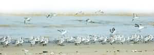 每当到了候鸟聚集时节,金厦两地的小精灵们,仿佛都约好了似的,集聚在树林间、湿地里,竞相展示自己美丽的身姿和迷人的体态。抹着“口红”的红嘴鸥,高傲地踱着步子来回;留着两条辫子的小白鹭,三五成群地低头觅食;在红树林边闲游的绿翅鸭,成双成对更显得怡然自得,再看看那些黑翅长脚鹬,还在秀着自己美丽的粉红色长腿呢!