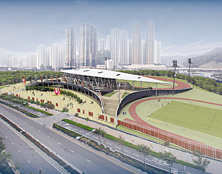 中新网4月29日电 据星岛日报报道,预计年底动工的香港○九年东亚运动会主场馆设计图曝光,新场馆可容纳三千五百人,采用奥运五色环概念,天幕特设的九个天窗,象征着九个参与地区,同时引入环保概念,设置雨水收集器及可节省能源的太阳板等,达国际级水准。