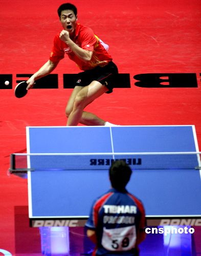 中新社不来梅四月二十九日电 (记者 王欢)不来梅第四十八届团体世乒赛男团四分之一决赛全面打响,此前一直轻松过关的头号种子中国队今天遇到了开赛以来最强劲的挑战,好在王励勤、马琳、陈玘顶住压力,以大比分三比零击败了在本届世乒赛上表现出色的法国队,获得明天与东道主德国队争夺决赛权的机会。