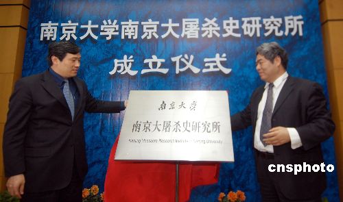 中新社南京四月二十九日电 (记者 王国安)由中共江苏省委宣传部、南京市委宣传部和南京大学共建的南京大学南京大屠杀史研究所今天正式揭牌成立,该研究所将整合南京及海内外的研究力量,打造南京大屠杀史研究的一流平台。
