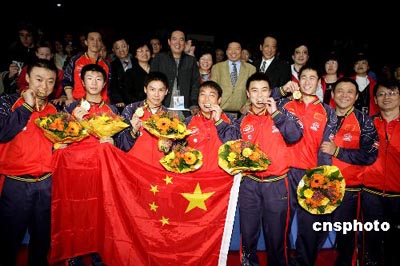北京时间5月1日,在刚刚结束的第四十八届世乒赛男团决赛中,卫冕冠军中国队三比零大胜最大劲敌韩国队,实现了世乒赛男团三连冠,这也是中国男队第十五次捧起斯韦思林杯。 作者:王瑶