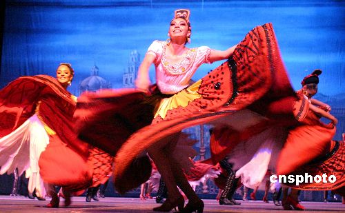 五月一日,墨西哥国家歌舞团的姑娘们掀摆着自己火红的长裙,踏着铿锵的踢踏,为北京观众带来一场浓烈的美洲风情歌舞。作为第六届“相约北京”联欢活动墨西哥主宾国开幕演出,墨西哥国家歌舞团的狂热演出不时引起天桥剧场内阵阵沸腾。作者:廖攀