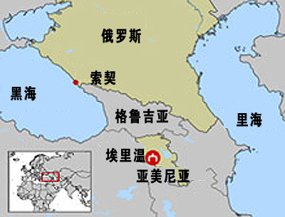 图:亚美尼亚百人客机坠机区域示意图