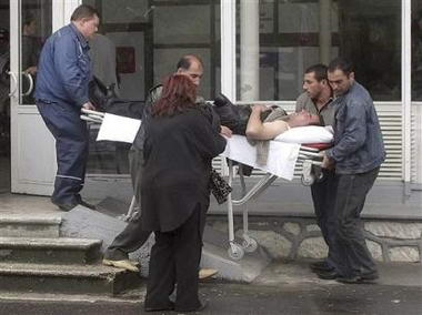 中新网5月3日电 据路透社报道,亚美尼亚航空公司一架A320型客机当天凌晨在俄南部黑海海滨城市索契附近海域坠毁,机上105名乘客和8名机组人员全部遇难。图为救援人员在抢救遇难者家属。(春风)