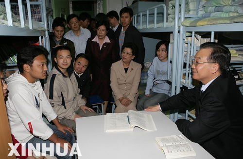 离开图书馆,温家宝先后来到学生宿舍看望青年学生,并在学生食堂共进午餐。他一一询问大家来自哪里,想不想家,生活上有什么困难。对来自困难家庭的学生,温家宝更是关切地询问他们的学费和生活费有没有保障。当听到同学们说通过助学贷款、奖学金等方式,能够解决上学费用问题时,温家宝十分欣慰,再三叮嘱教育部负责人,一定要帮助困难学生解决问题。