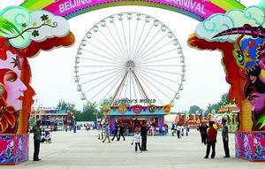 昨天下午1时30分,北京国际雕塑公园北园的“2006北京·富尔杰·环球嘉年华”现场,从场地中部的过山车项目开始,几名被招募来此工作的大学生到各个项目前,招呼其他正在工作的大学生响应暂时停工的提议。