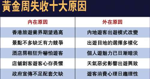 有立法会议员指出,今次黄金周是多年来首次录得下跌,足以引起警惕,香港须进一步提升竞争力,包括兴建更多设施,例如赌场、新主题公园等,保持吸引力。