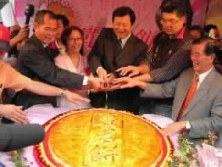 连胜文直嚷:“这个问题可能现在问我太早了!”他还一本正经地说,下次两岸经贸论坛,这个饼应该一起带去推销才是。