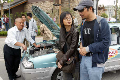 不过,显然张国立没有给郭德纲试戏,就决定起用他了。因为在片中饰演出租车司机的郭德纲,根本不会开车。“我跟导演说我真不会开车,他不信,说以前还听说郭德纲买了一特贵的马自达呢,其实那是我媳妇开的,我真不会,刚才转弯那戏,我就不知道还得转方向盘。”为了佯装郭德纲这司机能开车,张国立特意调来了一辆大拖车,拖着现场的出租车保持行进的感觉。