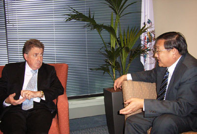 在有100多人参加的招待会上,张大使发表了热情洋溢的讲话。他向来宾介绍了中国改革开放事业取得的巨大成就、阐述了科学发展观的丰富内容、通报了中新关系的最新发展,表示在任期内将竭尽全力落实温总理访新成果,为祖国的外交事业做出贡献。在座华人华侨为祖国腾飞感到自豪,也为见证中新友谊发展感到高兴,表示将一如既往全力支持使领馆工作。