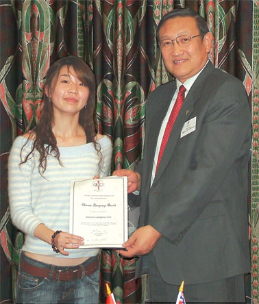 新西兰新中友好协会惠灵顿分会四月份的例会上,一个女孩吸引了大家的眼球,她就是惠灵顿地区“汉语奖”的获得者王頔,中国驻新西兰大使张援远亲自为她颁发了大奖。