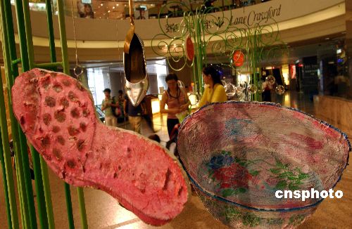 香港时代广场于母亲节期间,举办名为“女·鞋时代”将40款5个著名品牌的高跟鞋展出。各展台的设计创意都非常别致。作者:谭达明
