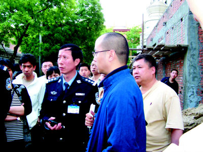窦唯(右三)与警察在报社楼下