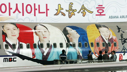 “大长今号”是在韩亚航空B767型客机上装上长13米宽4米的电视剧“大长今”图案,计划今后一年里,投入到大长今热潮高涨的东南亚及日本、中国航线上。