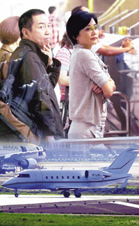 根据机场内部昨天传出的消息透露,这部“Bom-bardier Challenger”的私人商务飞机,其实是邢李(火原)和林青霞的私人飞机。这一型的私人商务飞机性能好、内部客座豪华,属于世界先进机型,很受需要全球飞的大老板喜爱。除了飞机很贵外,养机师、维修费等也很花钱。