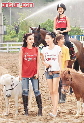 蔡少芬、黎姿、阿畲及陈豪等一众《火舞黄沙》演员昨日拉大队到骑术学校宣传,穿上超短热裤出现的阿畲全程风骚不已,被传媒追住屁股拍照,抢尽风头!阿畲事后否认刻意抢镜:“热嘛!好想冲凉。”