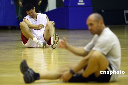 王治郅带伤参加中国男篮训练