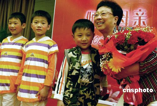 五月十三日,河北唐山孤儿村村长、孤儿们最敬爱的常玉珍妈妈,在中国妇女活动中心举办的“倾听母亲,感恩祖国”主题联谊活动中,接受孤儿村孩子们的鲜花祝福。当日,全国妇联、北京市妇联等单位在北京联合主办了此次联谊活动,来自各行各业的优秀母亲出席了联谊会。作者:张勤