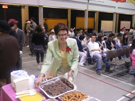 “我带来了一道菜,中国名字叫‘红豆糕’。”温哥华所在的卑诗省财政厅长泰莱女士向现场母亲孩子们深情地说,“我知道,红豆在中国有相思的情意,而‘糕’即高,步步高升的意思。我希望在母亲节里,给母亲和孩子们良好的祝福,同时也希望孩子们给自己的母亲真诚道一声谢谢!”